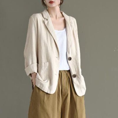 麻素材のアウタージャケットが登場しました!Vネックの襟付きとストレートなIラインで、大人可愛さときれいめの印象を演出します。シンプルで上品なデザインなので、どんなスタイルにも合わせやすいアイテムです。