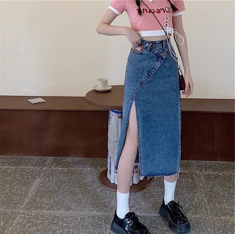 スカート ボトムス ロングスカート デニムスカート デニム ミドル ミドル丈 膝下 スリット フレア Aライン ハイウエスト かわいい 大人可愛い シンプル カジュアル 大人 おしゃれ お洒落 セクシー レトロ アジアン オトナ可愛い 大人女子 こなれ感 ラフ ガーリー ルーズ 個性的 無地 春 夏 秋 10代 20代 30代 レディース 女性用 ママ デート お出かけ 女子会 休日 アウトドア リゾート 旅行 海 プール ショッピング 普段使い 韓国系 ファッション コーデ ブルー 青 ブラック 黒 | Ritta