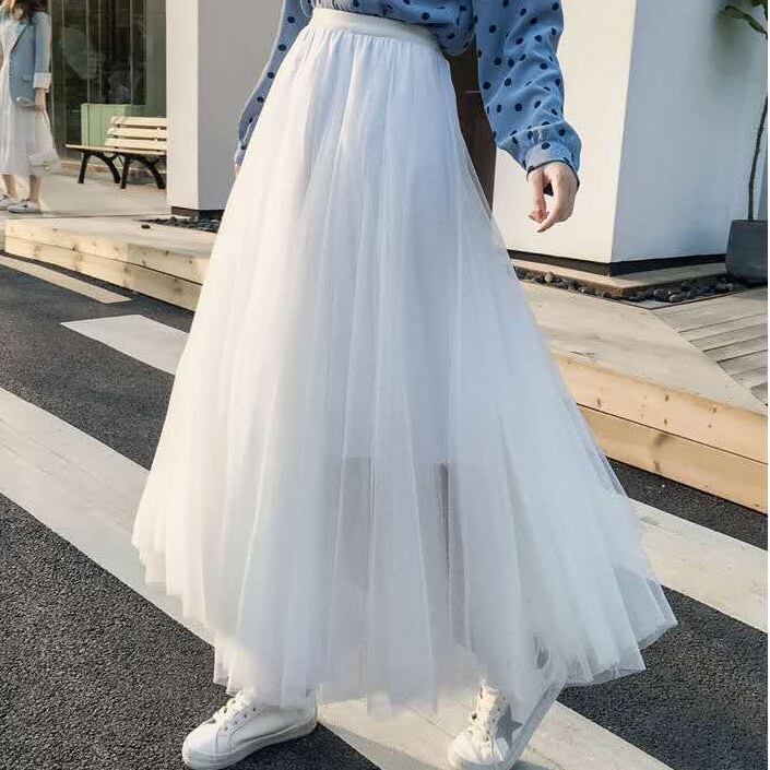 ふわっとしたボリューム感が可愛らしい、チュールロングスカート