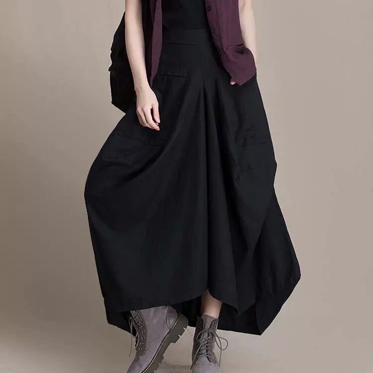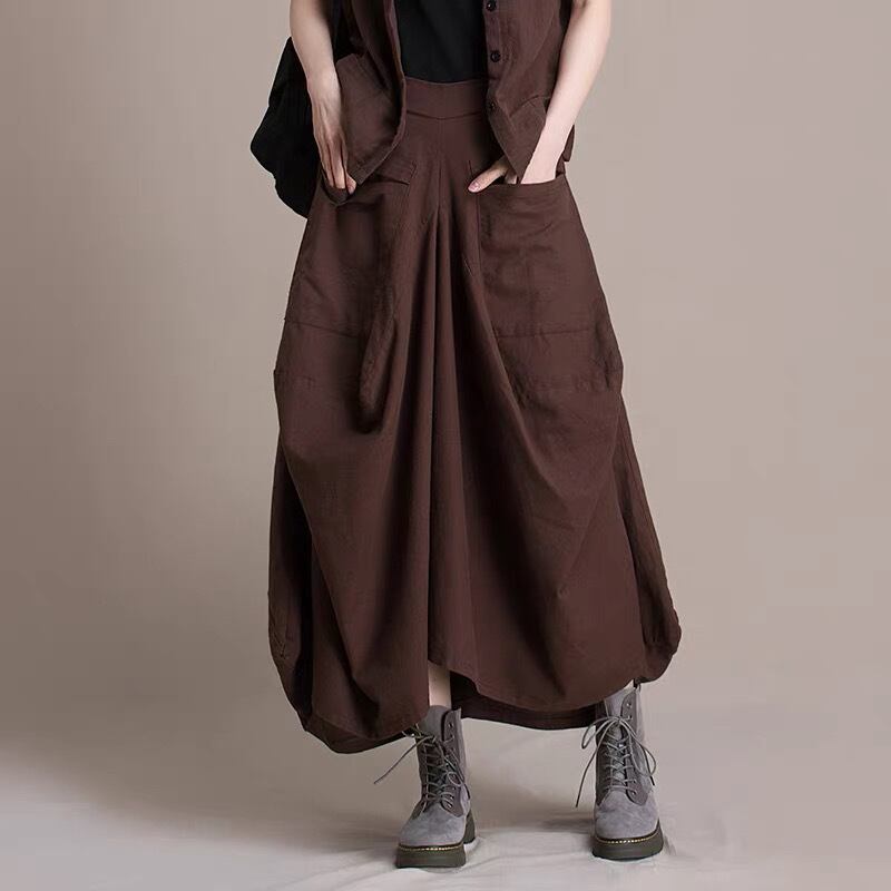 スカート ボトムス ロングスカート コクーンスカート ロング ロング丈 不規則丈 ワイド ポケット ハイウエスト ドレープ リネン コットン シンプル カジュアル 大人 おしゃれ お洒落 かっこいい レトロ エスニック こなれ感 ラフ マニッシュ ボーイッシュ 個性的 クール モード系 無地 春 夏 10代 20代 30代 40代 レディース 女性用 着回し 普段使い 韓国 韓国系 ファッション コーデ スタイル サイズ フリーサイズ ワンサイズ 色展開 黒 ブラック 茶色 ブラウン ネイビー 紺 ダーク | Ritta