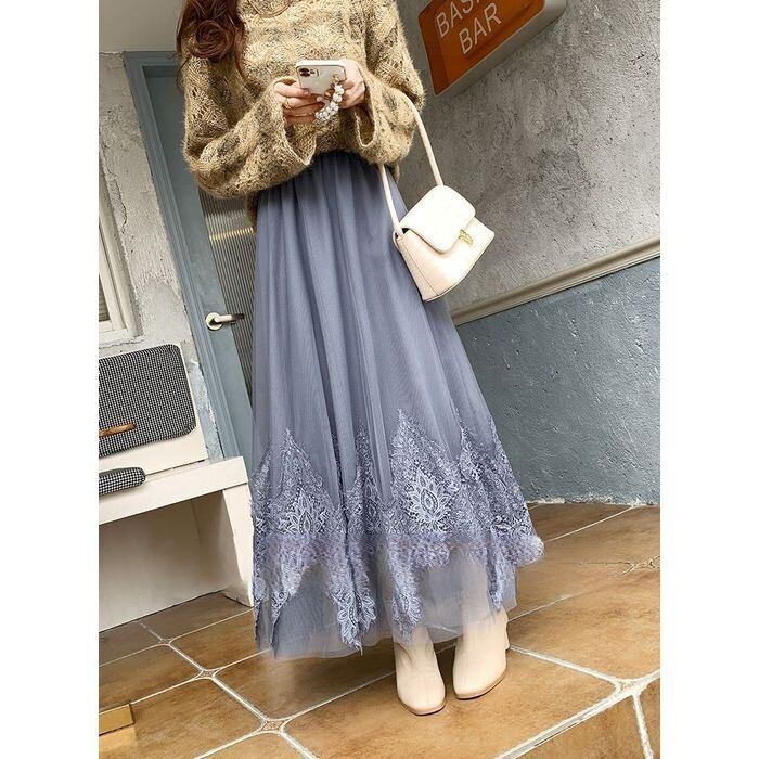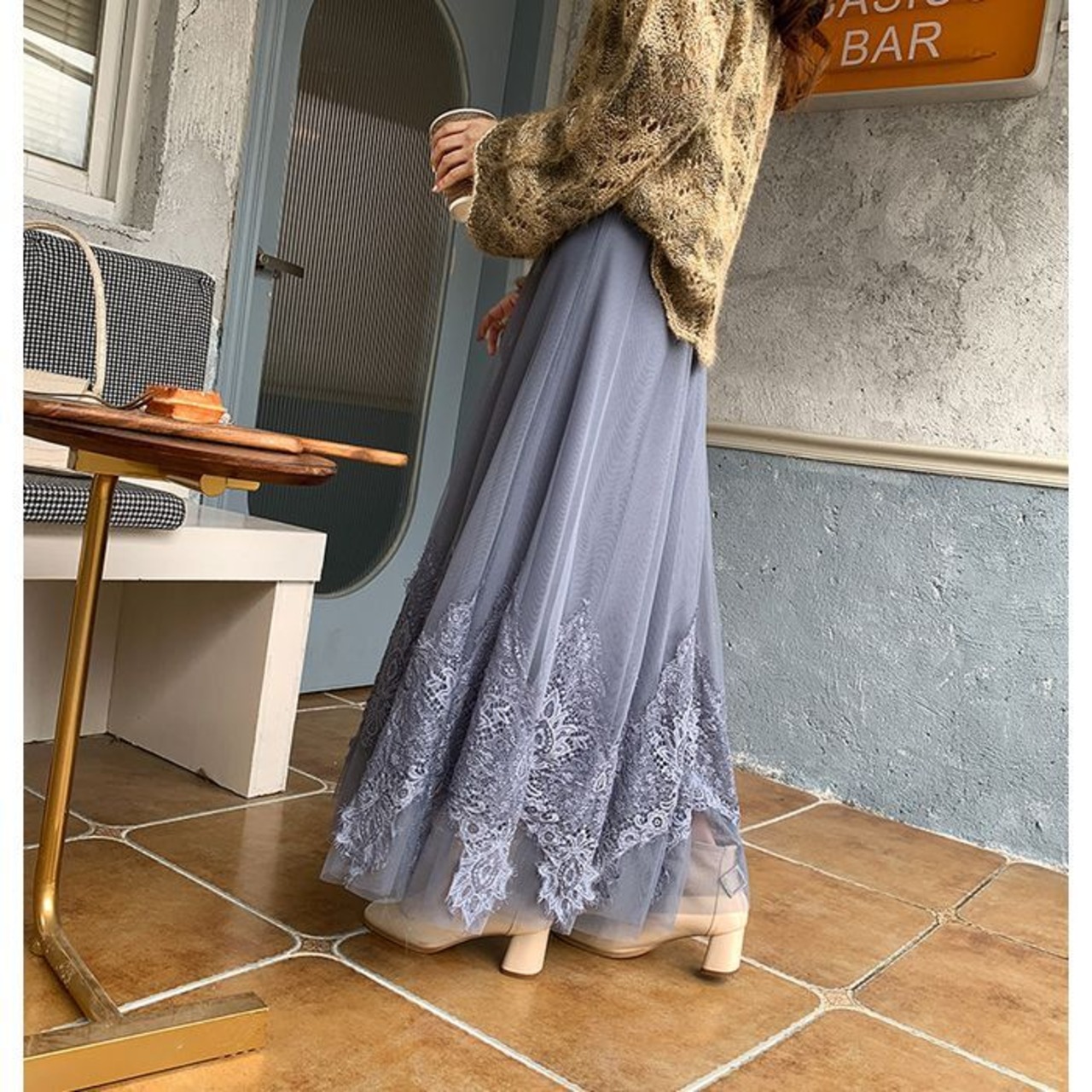 スカート ボトムス ロングスカート チュールスカート ロング ロング丈 フレア Aライン レース 刺繍 チュール ハイウエスト ウエストゴム かわいい 大人可愛い おしゃれ お洒落 キュート ガーリー エレガント 主役級 存在感 ドール ドーリー 無地 柄 フラワー 春 夏 結婚式 衣装 10代 20代 30代 レディース 女性用 デート お出かけ 女子会 休日 パーティー イベント ショッピング 着回し 普段使い 韓国系 ファッション コーデ スタイル 楽ちん フリーサイズ グレー ベージュ パープル | Ritta
