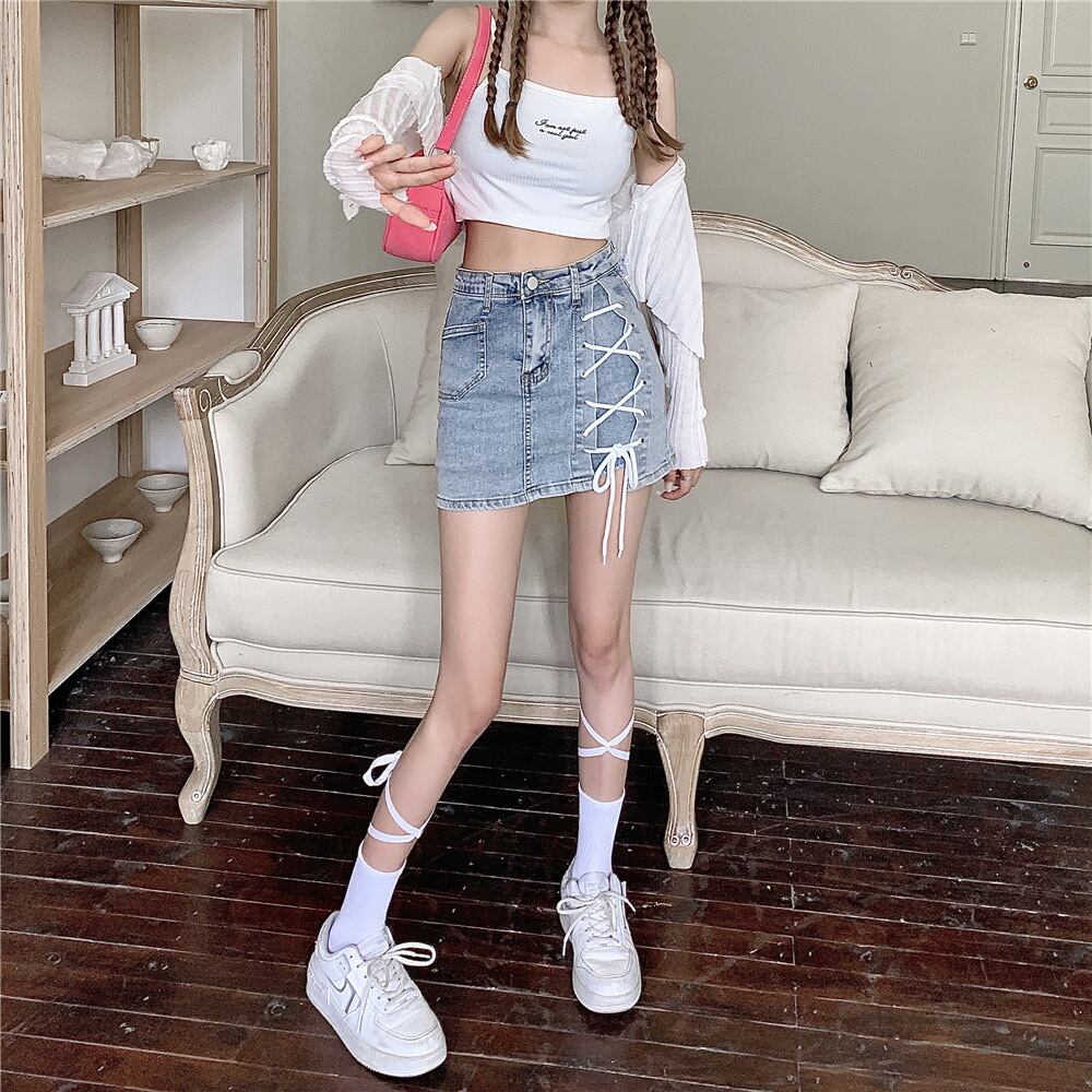 レースアップ デニム スカート ボトムス ミニスカート ミニ ミニ丈 ショート ショート丈 膝上 スリム タイト 細身 Aライン 台形 リボン ハイウエスト かわいい 大人可愛い カジュアル おしゃれ お洒落 オトナ可愛い 個性的 クール セクシー 無地 ブルーデニム 春 夏 秋 冬 10代 20代 30代 レディース 女性用 デート お出かけ 女子会 休日 旅行 プール ショッピング 着回し 普段使い 韓国 韓国系 オルチャン ファッション コーデ スタイル 美脚 ワンホン サイズ S M L XL 青 | Ritta