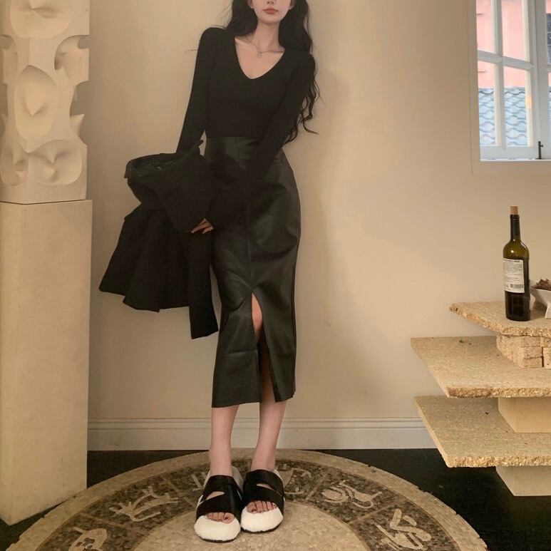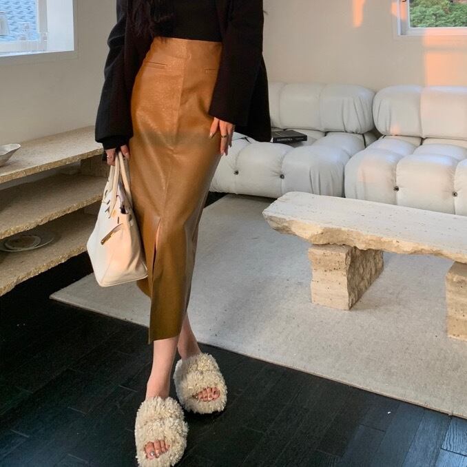 スカート ボトムス ロングスカート 膝下 ミモレ ミモレ丈 ロング ロング丈 スリム 細身 ストレート ハイウエスト レザー 大人可愛い きれいめ シンプル カジュアル 大人 上品 おしゃれ お洒落 かっこいい レトロ オトナ可愛い 大人女子 無地 秋 冬 10代 20代 30代 40代 レディース 女性用 デート お出かけ 女子会 休日 ショッピング 着回し 普段使い 韓国 韓国系 オルチャン ファッション コーデ スタイル 高見え ワンホン サイズ S M L 色展開 黒 ブラック 茶色 ブラウン 色 | Ritta