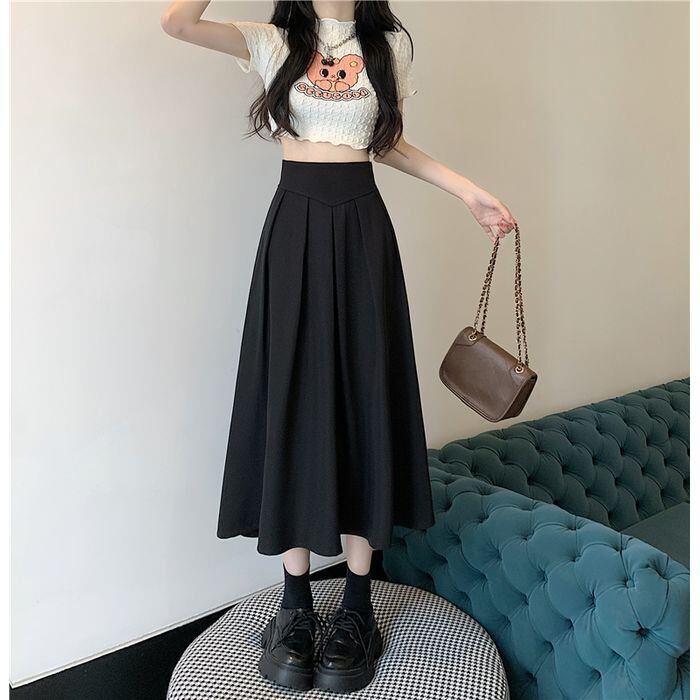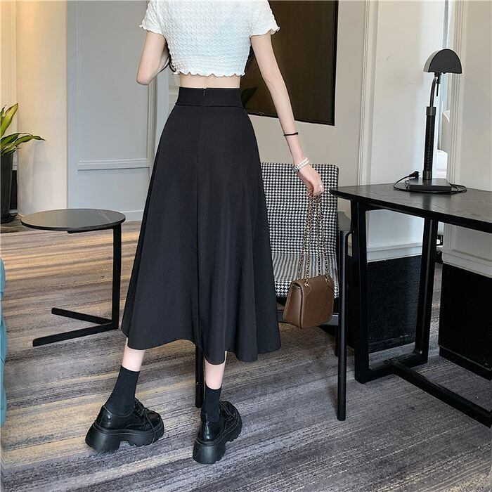 スカート ミモレ丈 膝下丈 フレア Aライン ハイウエスト ボックスプリーツ かわいい 大人可愛い きれいめ シンプル カジュアル 大人 上品 おしゃれ かっこいい 大人可愛い 大人女子 こなれ感 ラブリー キュート モダン 無地 春 秋 10代 20代 30代 レディース 女性用 通勤 学生 通学 カレッジスタイル デート お出かけ 女子会 休日 着回し 普段使い 韓国系 コーデ スタイル M L XL 2XL ブラック 黒 | Ritta