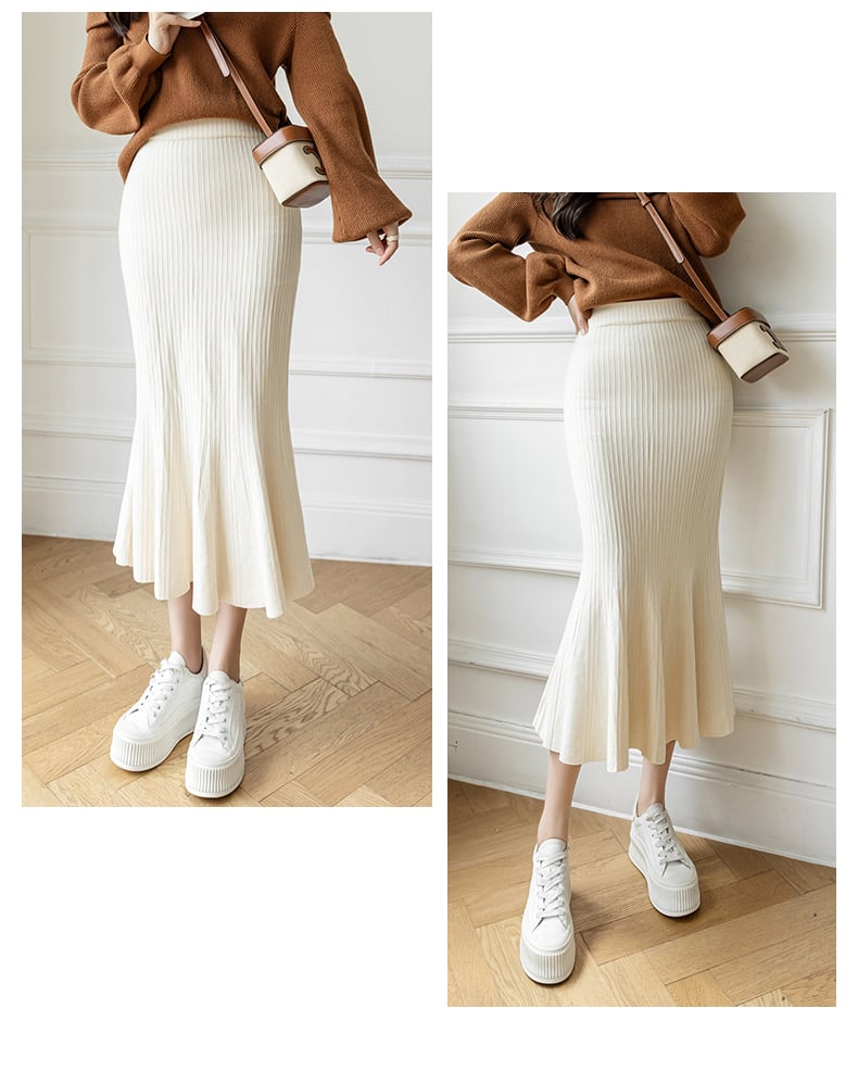 スカート ニットスカート ロング ロング丈 スリム マーメイド フリル ハイウエスト 異素材MIX 大人可愛い シンプル 大人 上品 おしゃれ お洒落 大人女子 ガーリー エレガント 無地 春 秋 10代 20代 レディース 女性用 通勤 デート お出かけ 女子会 休日 パーティー イベント リゾート 旅行 レストラン ショッピング 普段使い 韓国 ファッション 暖かい モテ 美脚 脚長 定番 トレンド インスタ映え フリーサイズ ブラック グレー カーキ アプリコット | Ritta
