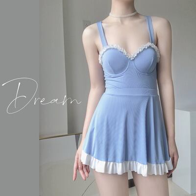 ワンピース水着 フレア 肩フリル スイムウェア ワンピース水着 体型カバー水着 ワンピース ウエストマーク タイト ハイウエスト 伸縮性 かわいい 大人可愛い きれいめ 華やか 大人 大人っぽい おしゃれ 主役級 存在感 女っぽ 花柄 フラワー 10代 20代 30代 40代 レディース ママ 女の子 夏 海 ビーチ プール リゾート 旅行 スタイルアップ ファッション コーデ スタイル M L XL ブルー フェミニン水着 洋服風 無地 フレアスカート | Ritta