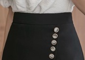 膝丈で大人可愛い印象を与えるスカートはハイウエストでスタイルアップ効果も期待できます。レースのデザインが女性らしさを引き立て、ボトムスの存在感を演出します。
