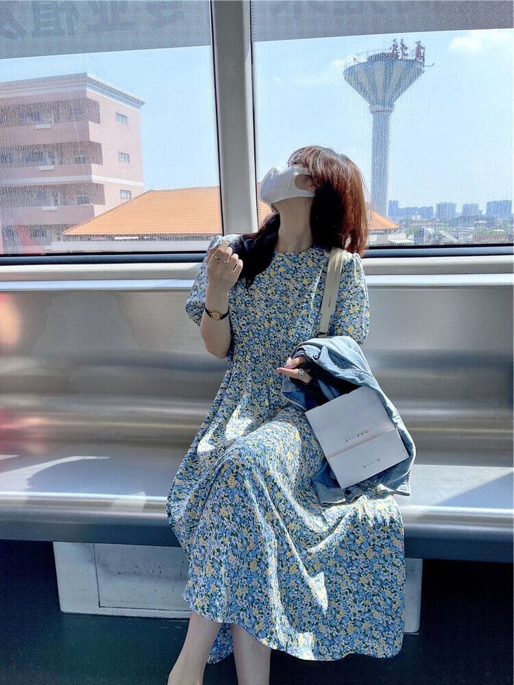 ワンピース ロング ロング丈 マキシ マキシ丈 半袖 パフスリーブ ラウンドネック Aライン ハイウエスト かわいい 大人可愛い 大人 上品 おしゃれ お洒落 レトロ 大人女子 ガーリー 花柄 夏 10代 20代 レディース デート お出かけ 女子会 お泊まり 休日 リゾート 旅行 海 プール ショッピング 着回し 普段使い 韓国 ファッション コーデ スタイル 楽ちん モテ 体形カバー 脚長 プレゼント ギフト インスタ映え S M L XL 大きいサイズ ブルー | Ritta