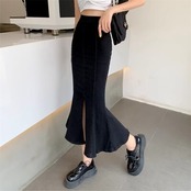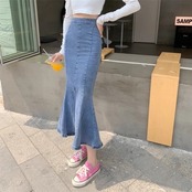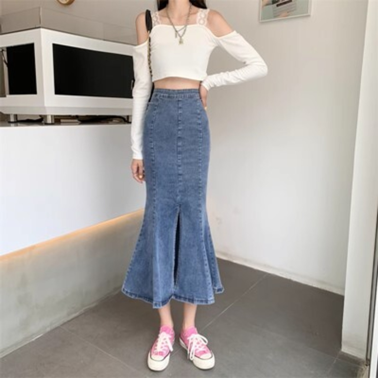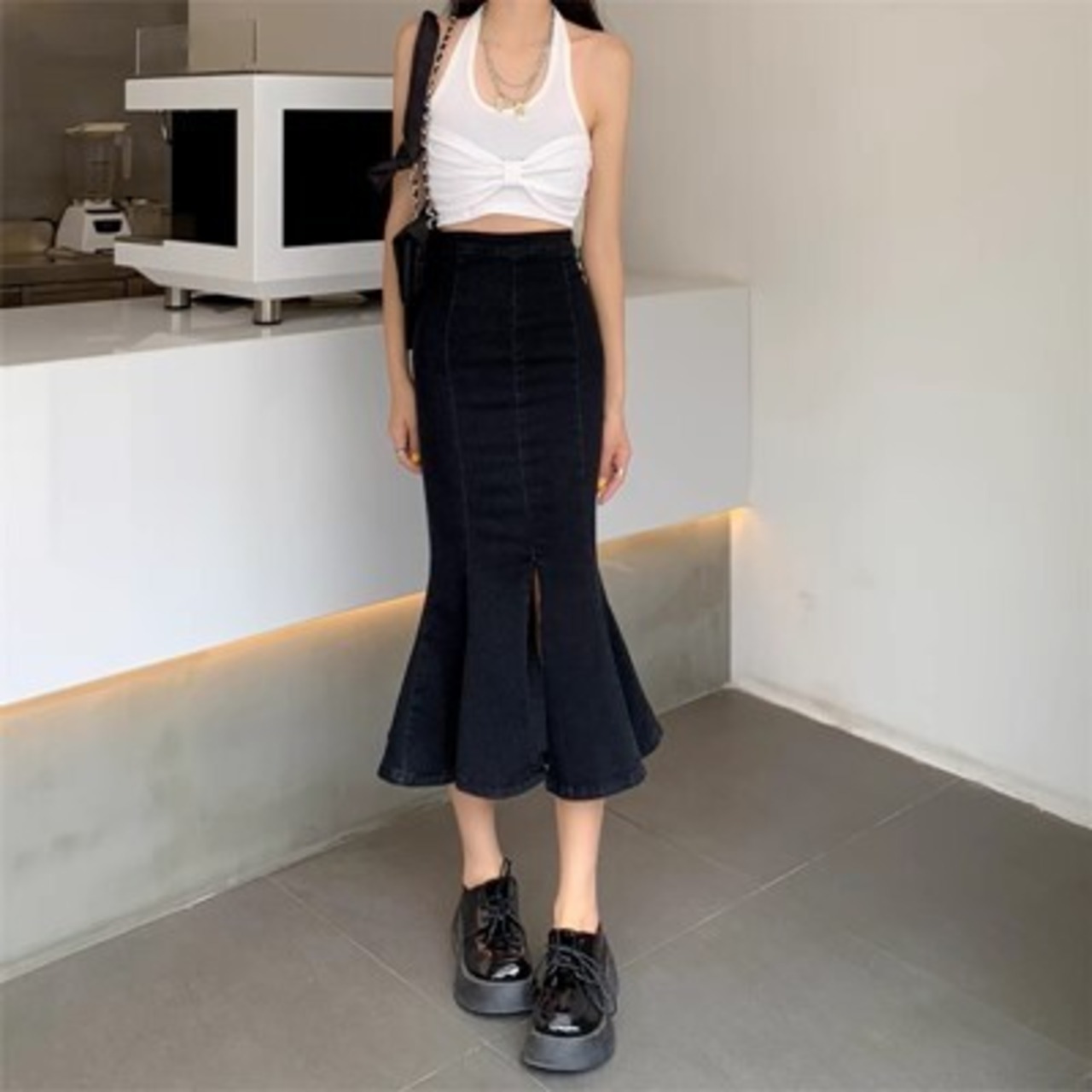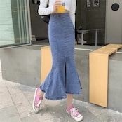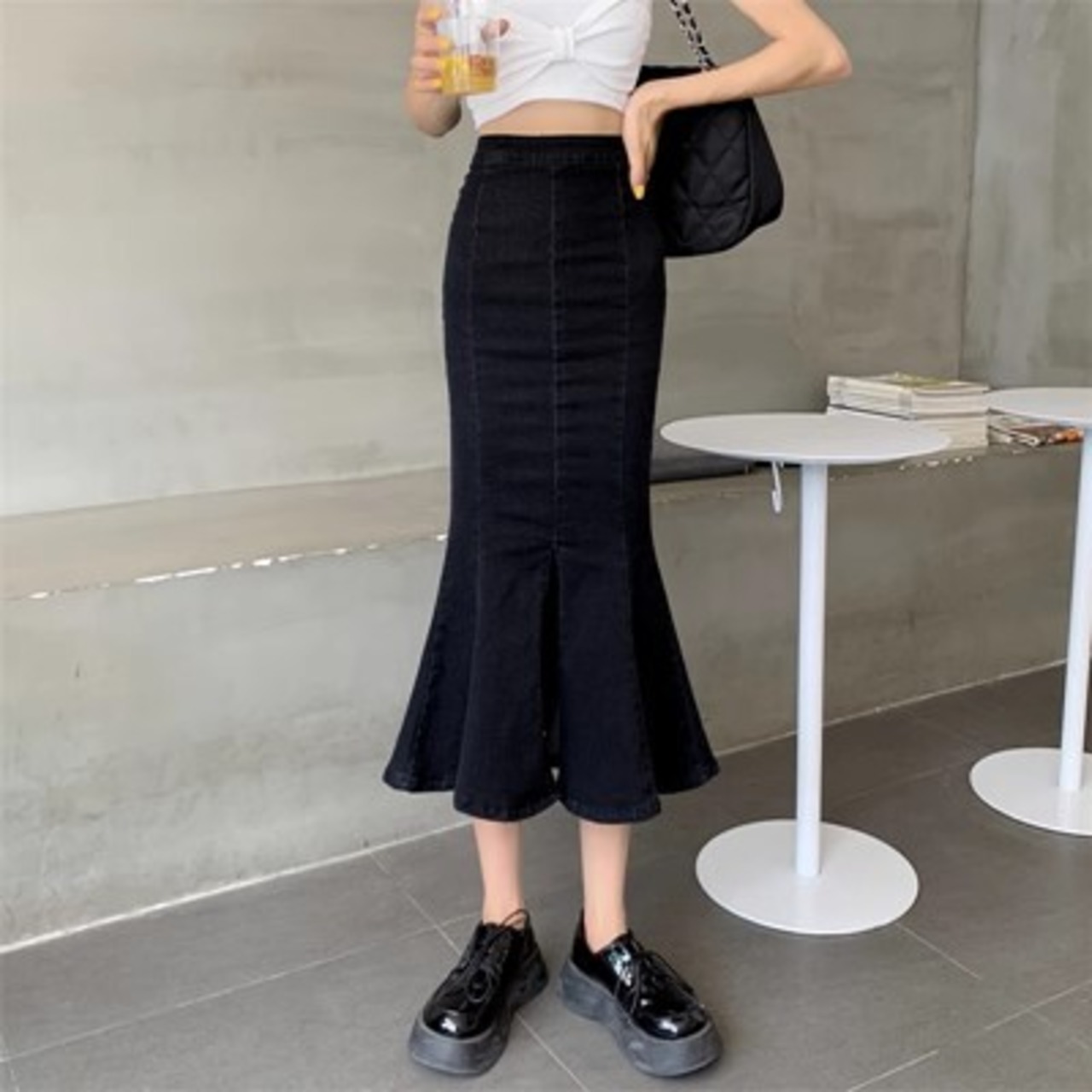 スカート デニムスカート マーメイドスカート ロング丈 マーメイド デニム かわいい 大人可愛い きれいめ シンプル カジュアル 大人 上品 おしゃれ かっこいい 大人可愛い 大人女子 こなれ感 ラブリー キュート モダン 無地 春 秋 10代 20代 30代 レディース 女性用 通勤 学生 通学 デート お出かけ 女子会 休日 着回し 普段使い 韓国系 コーデ スタイル 美脚 脚長 S M L ブラック ブルー | Ritta