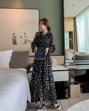 大人可愛い上品な花柄ワンピースです。ロング丈のマキシワンピースで、透け感のあるレースが女性らしさを引き立てます。ハイウエストのデザインが脚長効果を演出し、体型カバーにもなります。シースルーの袖が華奢な印象を与え、大人女子にぴったりのおしゃれな一着です。秋のデートやお出かけ、女子会やパーティーにもぴったりです。また、リゾートや旅行先の海や高原でも素敵に映えること間違いありません。
