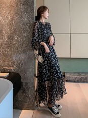 ワンピース ロング ロング丈 マキシ マキシ丈 長袖 レース ハイウエスト 透け感 シースルー かわいい 大人可愛い 大人 上品 おしゃれ お洒落 大人女子 ラフ キュート ガーリー セクシー 花柄 秋 20代 30代 レディース 通勤 デート お出かけ 女子会 休日 パーティー イベント リゾート 旅行 海 高原 ショッピング 普段使い 韓国 ファッション コーデ モテ 体形カバー 脚長 プレゼント ギフト トレンド インスタ映え S M L XL 2XL 大きいサイズ ブラック 黒 | Ritta